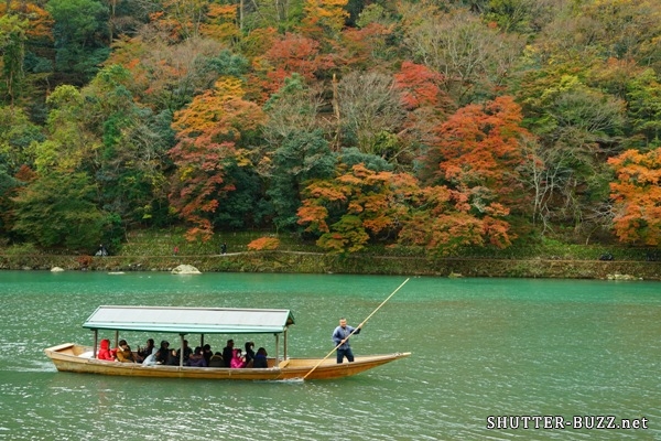 嵐山の紅葉屋形船。大堰川がいつも以上に碧かった。