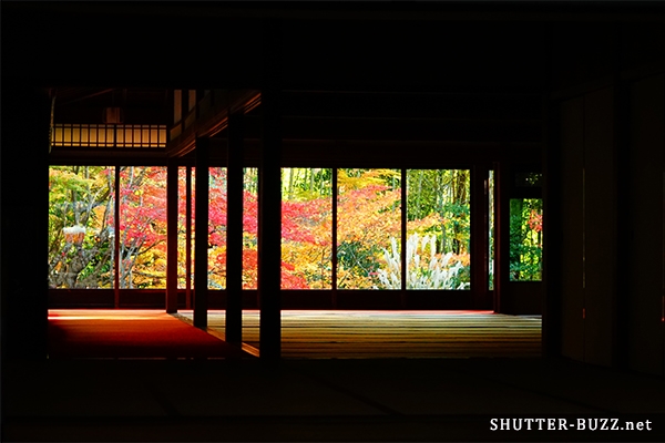 南禅寺天授庵の部屋越しに見る紅葉 – SONY α7(ILCE-7)撮影