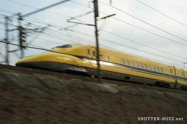 全力走行中のドクターイエロー、流し撮り撮影に成功。