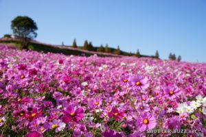 満開を迎えたコスモス畑。休日のお昼前だというのに誰も居ない独占状態。