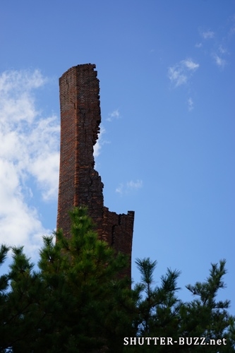 ちょっと地面が揺れれば崩れそうんな煙突。ちょっと強い風に見舞われるだけでも崩れそうな煙突。次行くときには残っているのだろか?