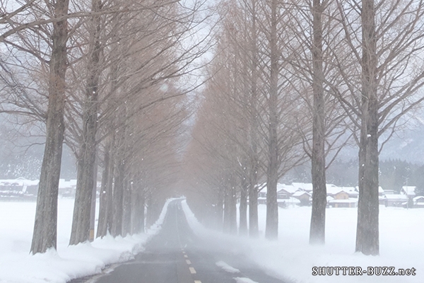 メタセコイア並木を妨げる風雪 – SONY α7(ILCE-7)撮影